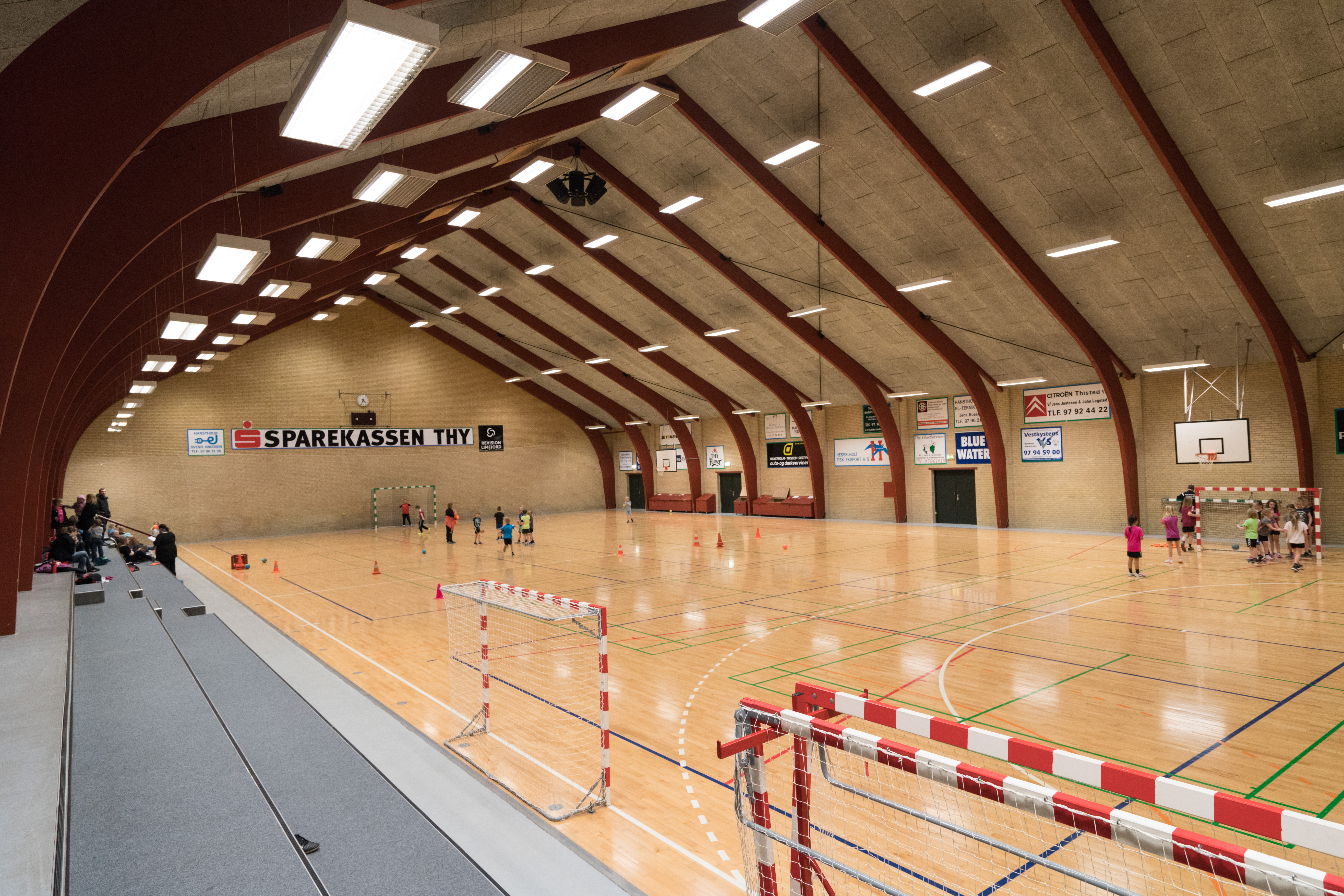 Hallen har standardmål så der kan spilles Håndbold/indefodbold på en 20 x 40 m bane. Dertil er der optegnet 5 badmintonbaner, 2 volleyballbaner, 1 minihåndboldbane, 1 tennisbane samt 2 basketballbaner.