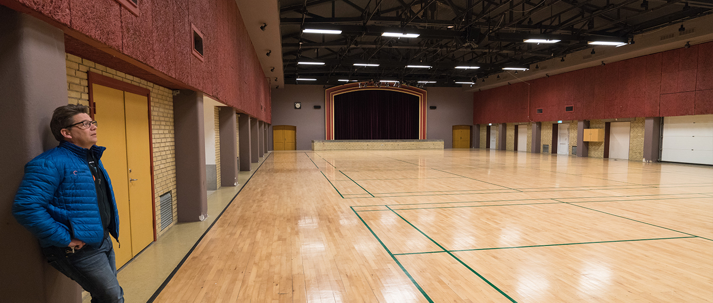 Hallen er en hyggelig hal med en scene i den nordlige ende. Der er en meget god akustik i hallen, som gør den velegnet til alle former for kulturelle og musikalske events. Den har en størrelse så mindre børn synes det er en super god gymnastik og idrætshal.